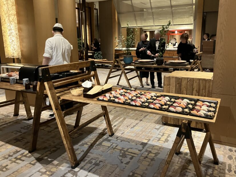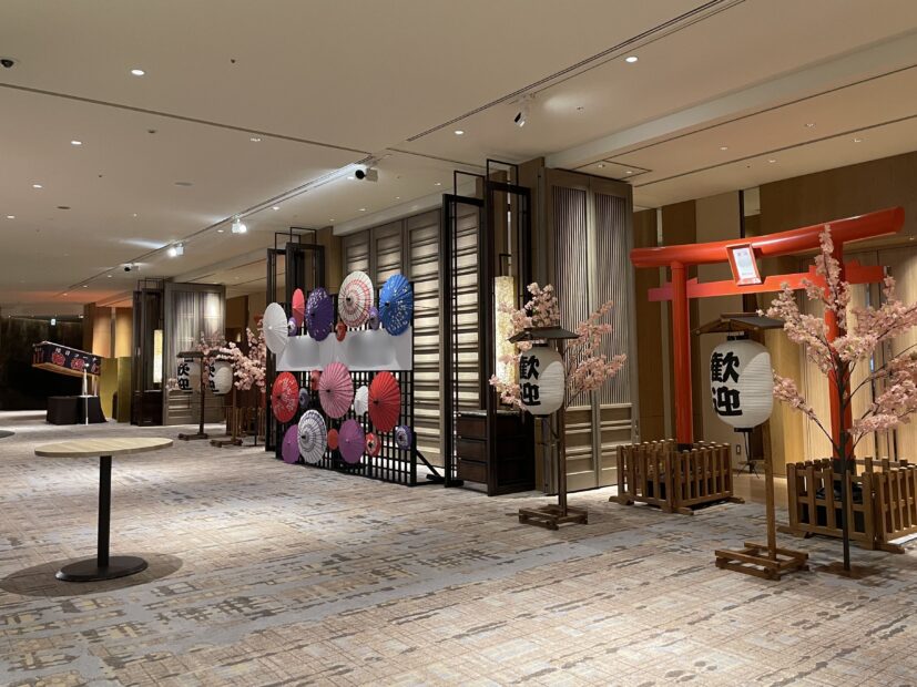 At the entrance of banquet room, put Torii gate to welcome the guests. Torii gates were privatized by inserting company logo, and lots of guests took own picture there.