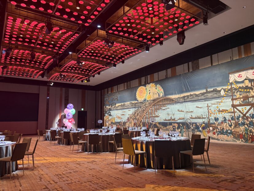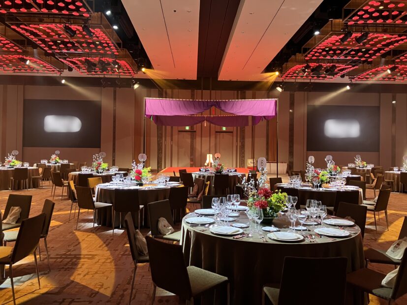As the party venue Grand Ball Room in Hotel Grand Hyatt Tokyo has been selected, and entire room space including foyer are decorated in Japanese style to welcome the guests.